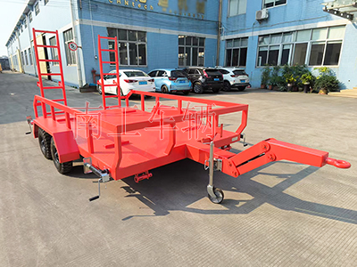 4.8吨消防车专用工具拖车 ATV拖车南工车辆长期非标订制,ATV拖车常用于五金机电,小型电器,轻型家具等短途运输周转,本款工具拖车用于履带消防机器人运输,外观精美,实用耐用,操作简单。