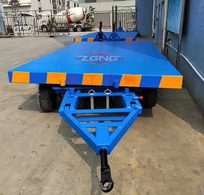 Dual traction flatbed trailer is a non-standard customized vehicle for Nangong, with dual turntables and very flexible steering. It has a small turning radius and can be towed in both directions. It has a large carrying capacity and a small weight. It is a tool trailer commonly chosen for narrow factory areas and small locations.